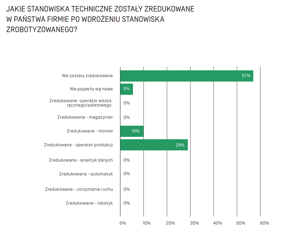 2. W firmie produkującej blachy perforowane początkowe obawy przed robotami (zwłaszcza na spawalni) zostały przezwyciężone dzięki oddolnej inicjatywie jednego z konstruktorów (obecnie kierownika projektów), który znalazł zrobotyzowane rozwiązanie dostosowane do konkretnych potrzeb. Wdrożenie robotów nie tylko nie doprowadziło do redukcji zatrudnienia, ale wręcz stworzyło nowe miejsce pracy dla kolejnego robotyka. Członkowie zespołu teraz sami przychodzą z pomysłami na kolejne wdrożenia.