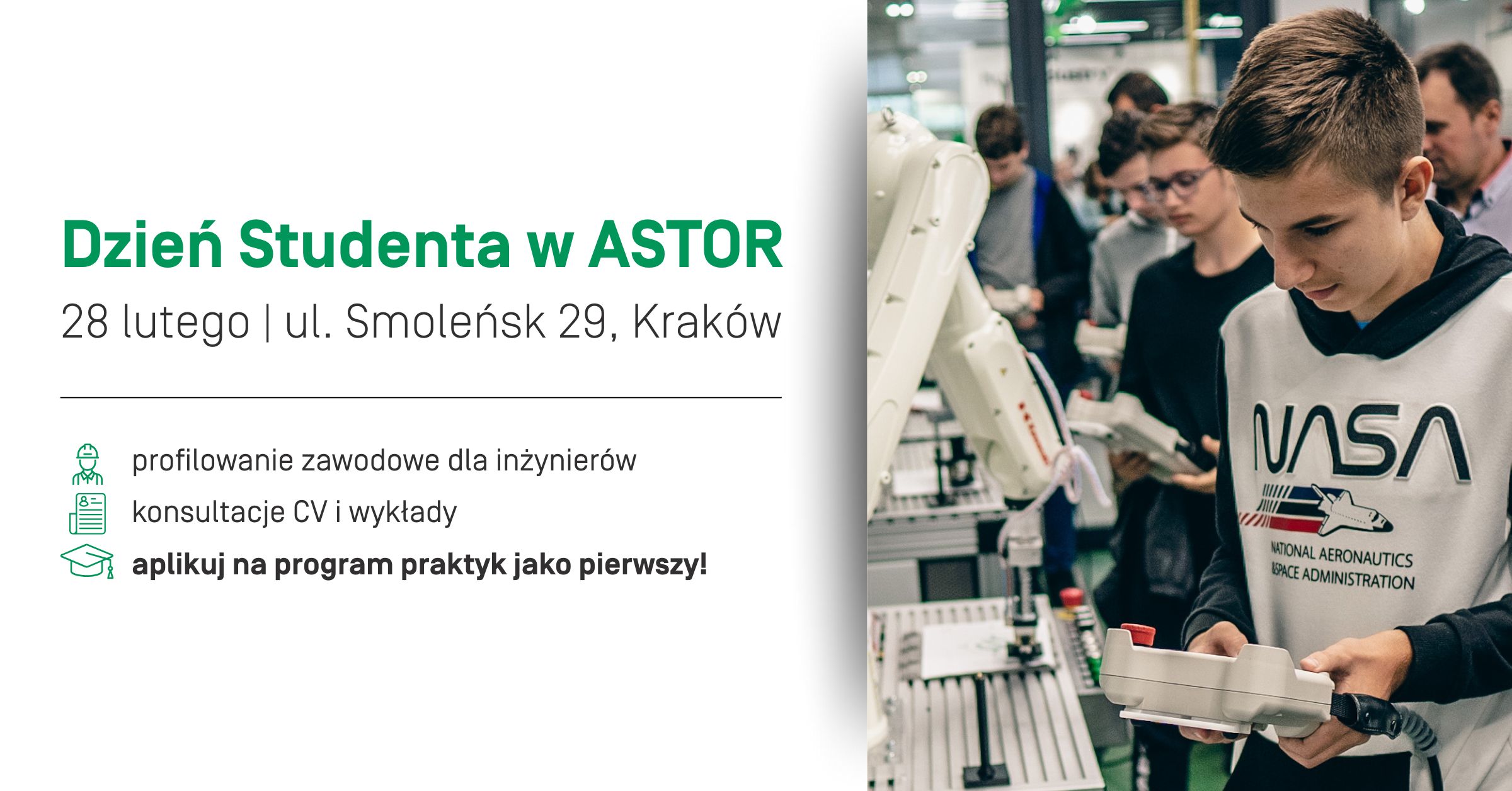Czy można zaplanować sukces zawodowy jeszcze na studiach? Firma ASTOR zaprasza studentów uczelni technicznych na wyjątkowy Dzień Studenta, który odbędzie się 28 lutego w Krakowie. To nie tylko okazja do poznania kulis nowoczesnego przemysłu, ale przede wszystkim szansa na zdobycie przewagi na rynku pracy i przedpremierowe zgłoszenie się na wakacyjny program praktyk.