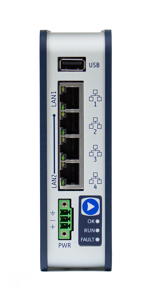 | Porty Ethernet | 1x ETH 10/100 Mbps (SRTP Client/Server, Modbus TCP Master/Slave, EGD, OPC-UA DA Server) 1x 3 portowy switch 10/100 Mbps (SRTP Client/Server, Modbus TCP Master/Slave, EGD, Profinet MRP) |