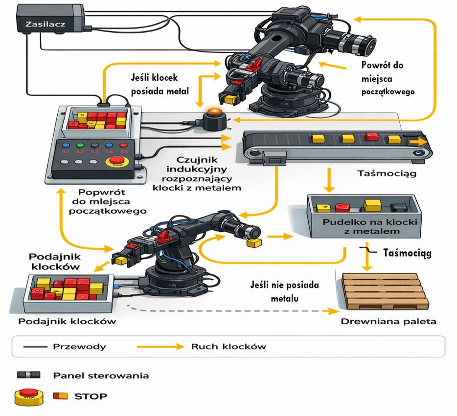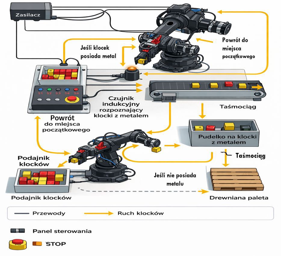 3. Jeżeli czujnik uzna, że klocek nie posiada w sobie metalu, robot ustawi go na palecie.