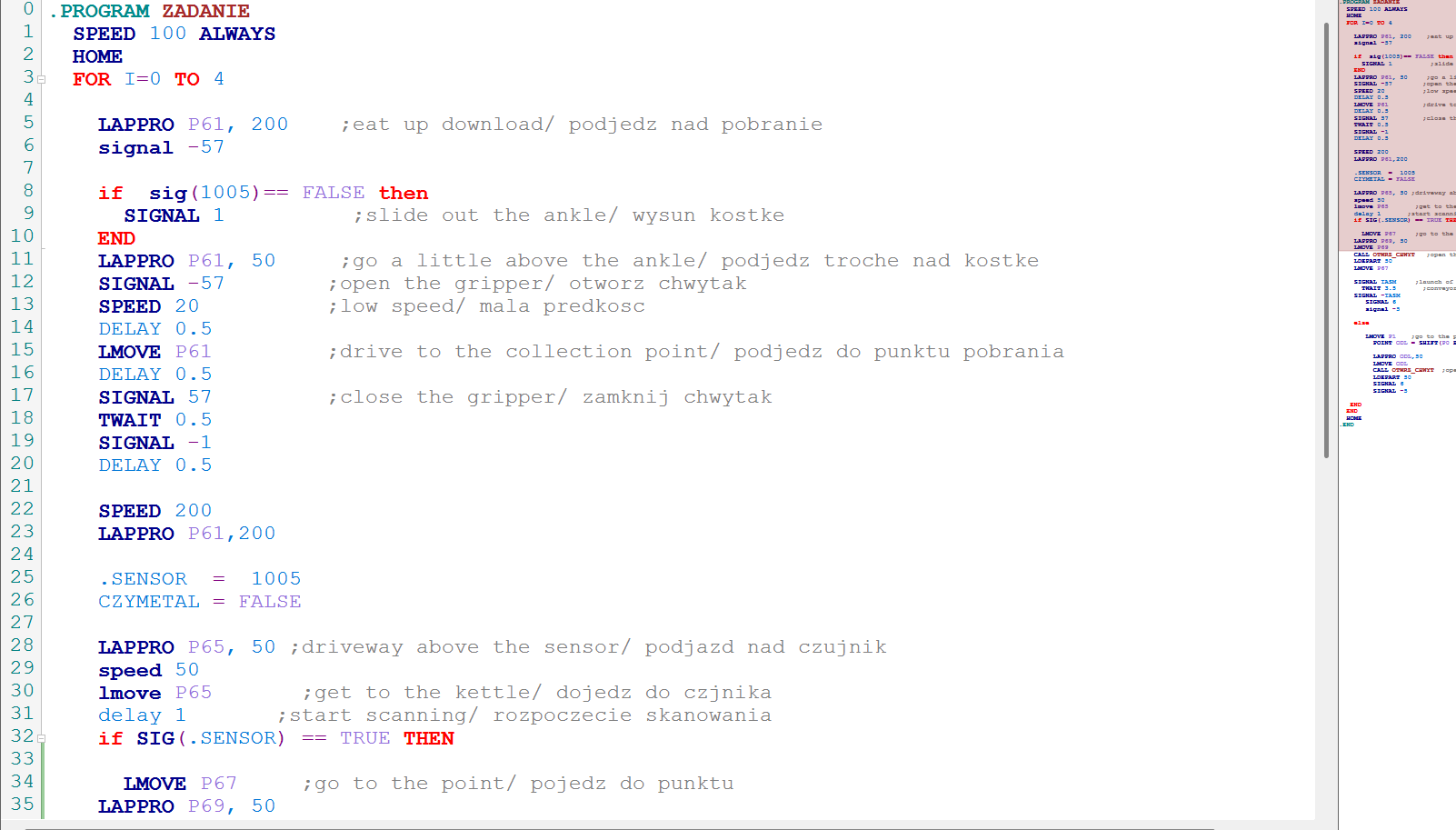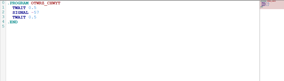 W programie został użyty podprogram OTWRZ_CHWYT,wywołany za pomocą funkcji CALL.
