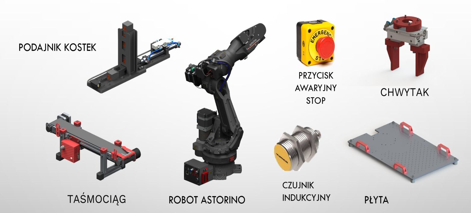 - Czujnik indukcyjny do detekcji kostek, podłączony do Astorino.