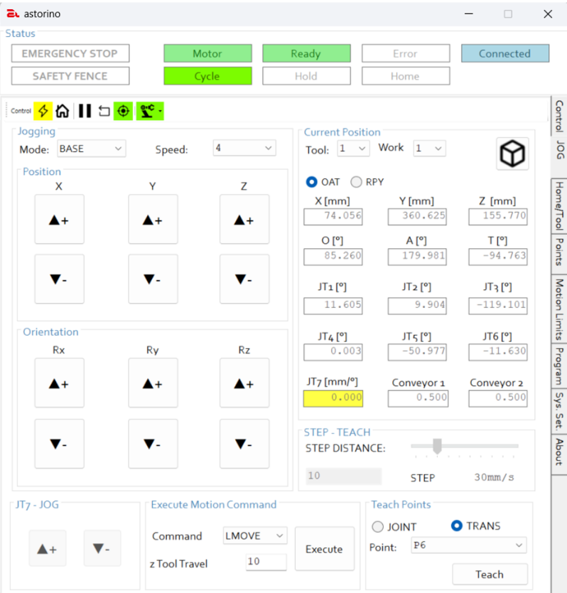 W celu wyeliminowania typowych błędów, które mogą się pojawić w tej aplikacji upewnij się, że firmware Astorino został zaktualizowany do najnowszej wersji.