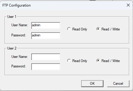 Następnie należy skonfigurować użytkownika, nadając mu login, hasło oraz poziom dostępu Read / Write.