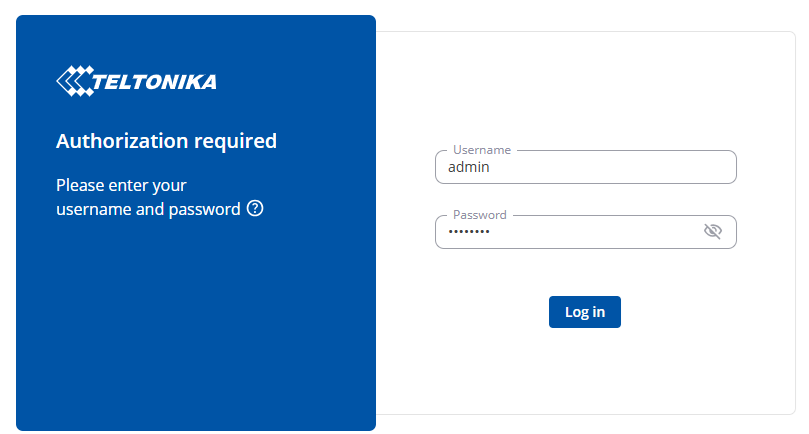 Interfejs logowania do WebUI z odpowiednio wprowadzonymi danymi wygląda następująco: