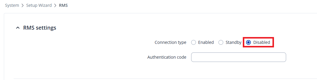 Jeżeli na ten moment nie będziesz miał w planach korzystać z systemu RMS ten krok możesz pominąć. W przypadku zdalnego dostępu do sterownika z wykorzystaniem WebMI funkcjonalność ta nie będzie wykorzystywana. Wybierz opcję Disabled i zakończ korzystać z kreatora konfiguracji przyciskiem FINISH.
