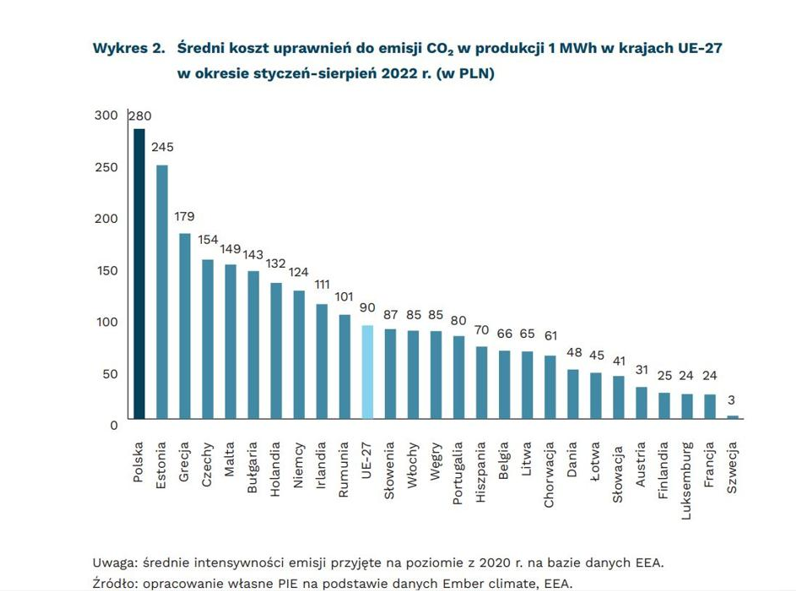 Creșterea costurilor pentru emisiile de CO2 afectează nu doar marile corporații, ci și întreprinderile mijlocii și mici, care se străduiesc să rămână competitive pe piață. Costurile legate de emisii reprezintă un procent mare din totalul cheltuielilor de exploatare în industrii precum industria grea, producția de ciment, metalurgia și industria chimică. Intensitatea ridicată a carbonului în sectorul energetic din Polonia, unde producerea unui MWh de energie este asociată cu emisii de peste 700 g de CO2, duce la cheltuieli mai mari pentru certificatele de emisii.