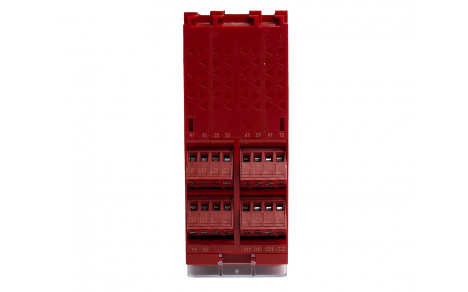 | Sygnalizacja lokalna | Błąd: LED (czerwony) START: LED (żółty) Safety output instantaneous: LED (żółty) Safety output delayed: LED (żółty) Safety status: LED (żółty) Safety input S12: LED (żółty) Safety input S22: LED (żółty) Safety input S32: LED (żółty) |