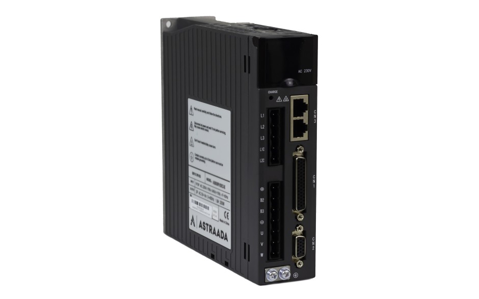 Serwowzmacniacz to nadrzędne urządzenie sterujące układu serwonapędowego. Za jego pośrednictwem wysyłane są sygnały sterujące silnikiem. To serwowzmacniacz analizuje wszelkie impulsy zewnętrzne, dostosowując ruch silnika. Programowanie serwonapędów przebiega w taki sposób, jak to ma miejsce w falownikach – trzeba zdefiniować odpowiednie wartości w specjalnych parametrach posegmentowanych na grupy. W przypadku serwowzmacniaczy Astraada SRV-63 programowanie i konfigurowanie parametrów jest bardzo proste. W bezpłatnym oprogramowaniu Astraada SRV CFG, parametry przedstawione są w formie intuicyjnej tabeli z pełnymi opisami poszczególnych wartości. Dzięki temu nie musisz korzystać z zewnętrznego zestawienia parametrów w dokumentacji. Komunikacja z oprogramowaniem odbywa się przez kabel USB na zasadzie plug-and-play, bez zbędnych konfiguracji łącza.